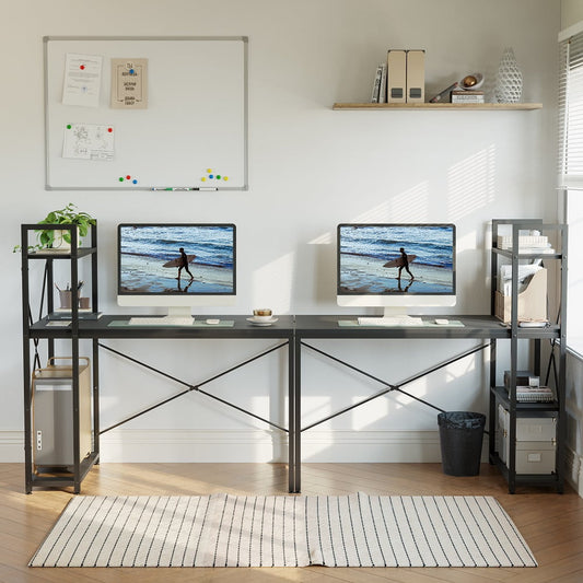 Bestier 56'' Computer Desk with Shelves for Home Office in Retro Grey Oak-Dark Office Furniture Computer Desks