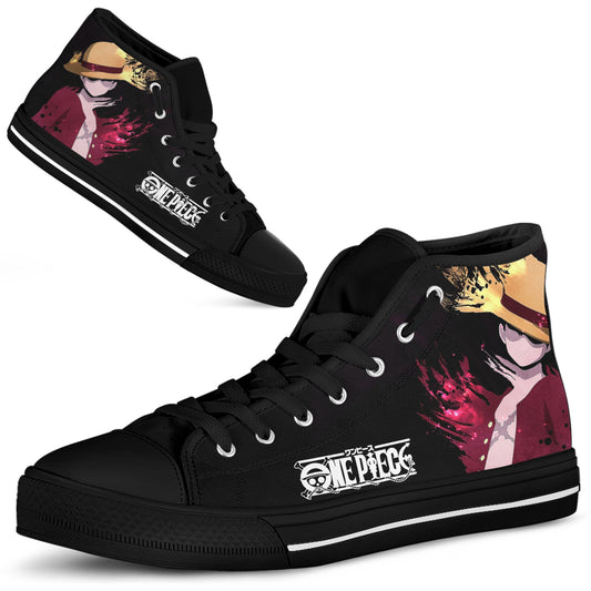 ELVISWORDS Men's Sports Sneakers One Piece Design Black Lace Up Canvas Shoes Japanese Anime Shoes One Piece Lovers Gift Zapatos