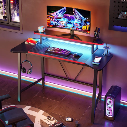 Gaming Desk, Heavy-Duty Gaming Computer Table with Carbon Fiber Surface